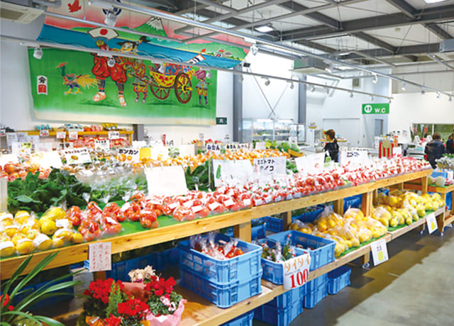 地元農家さんの朝どれ野菜や手作りのお惣菜が並ぶ直売所や、約20のお店が集まる土曜市など、新鮮でおいしい山の幸と海の幸がすぐそこに。